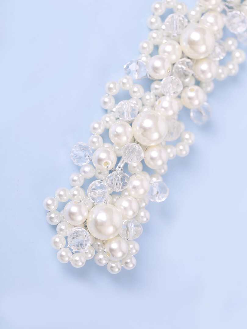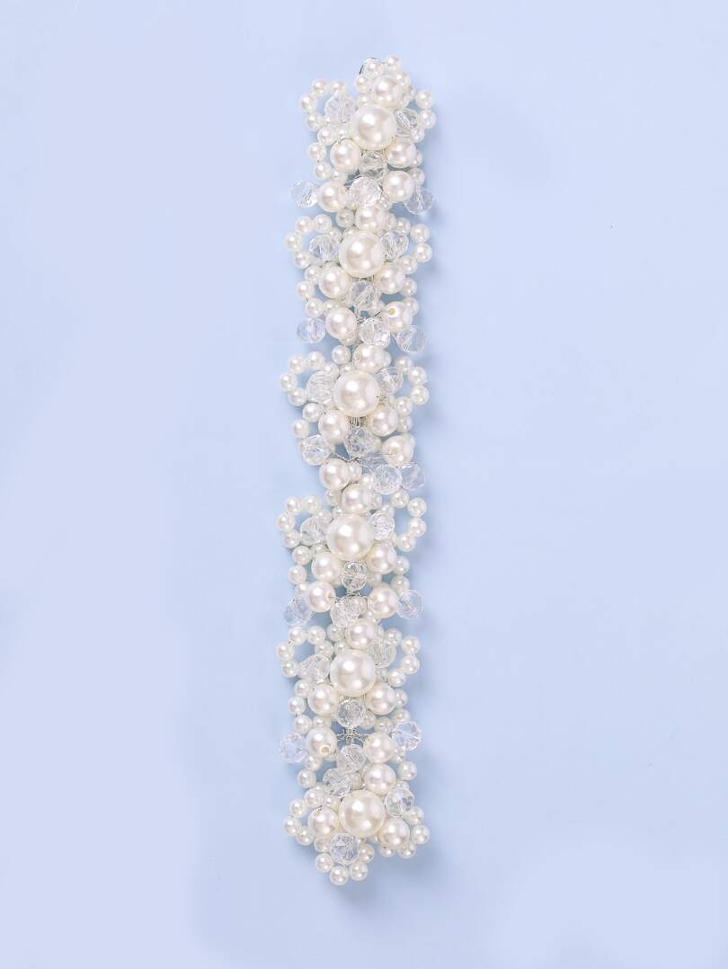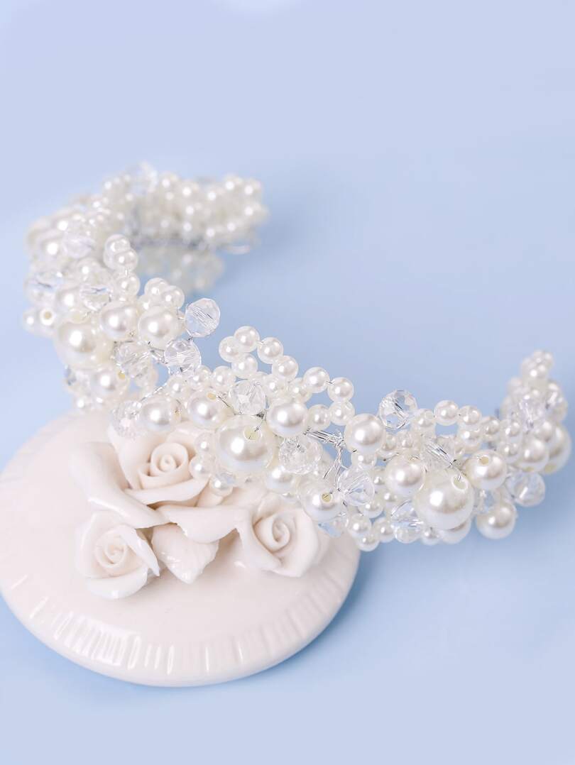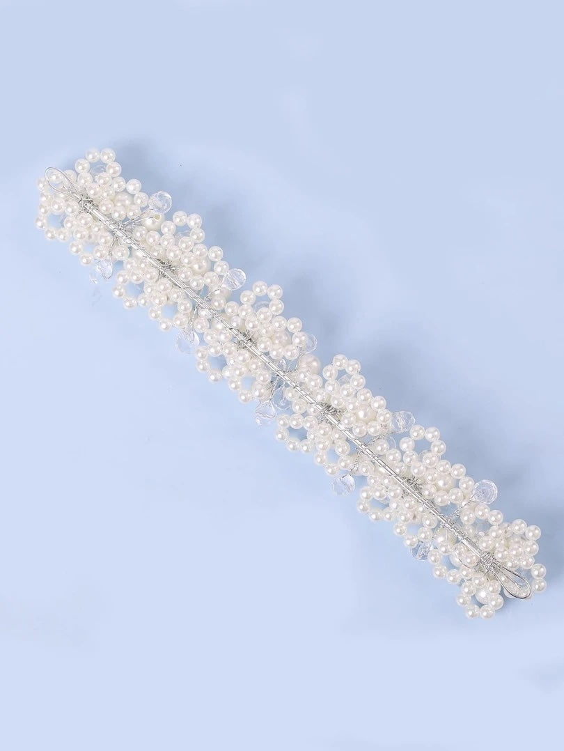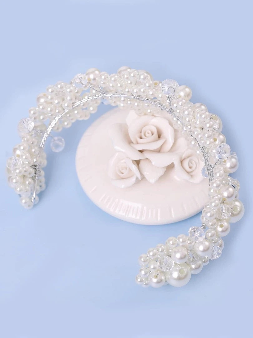 This Beautiful headband is hand wired with faux pearls and crystals.