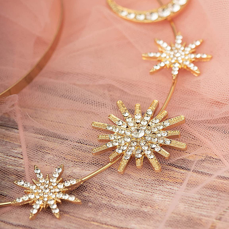 Fashion Sun Goddess Double-layer Headband Six-pointed Star Moon Alloy Crystal