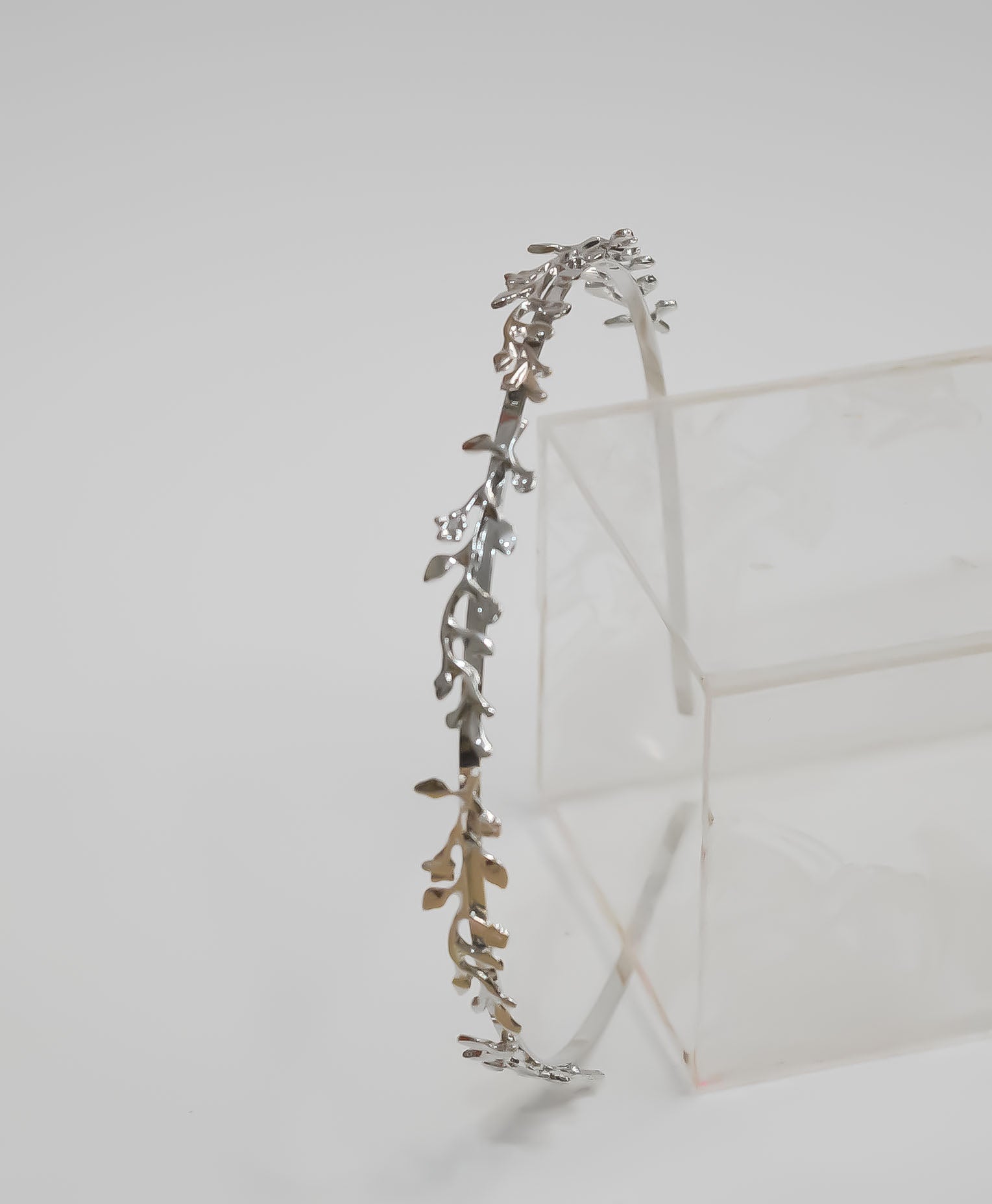 Exactly as pictured. My issue with this type of headband is that by gets really tangled in your hair when taking it out. It’s better for an updo that needs to stay in for a while.