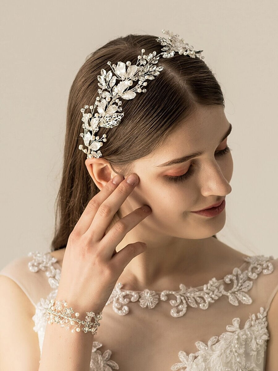 Rhinestone & Faux Pearl Decor Bridal Headwear