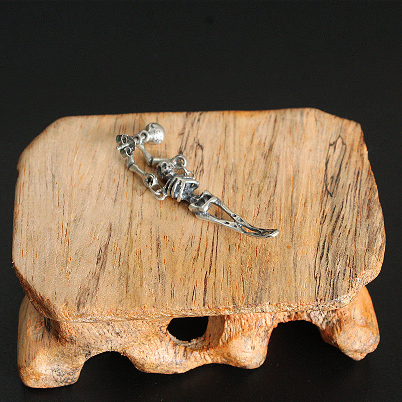 S925 Sterling Silver Personalized Creative Retro Simple Skull Stud Earrings