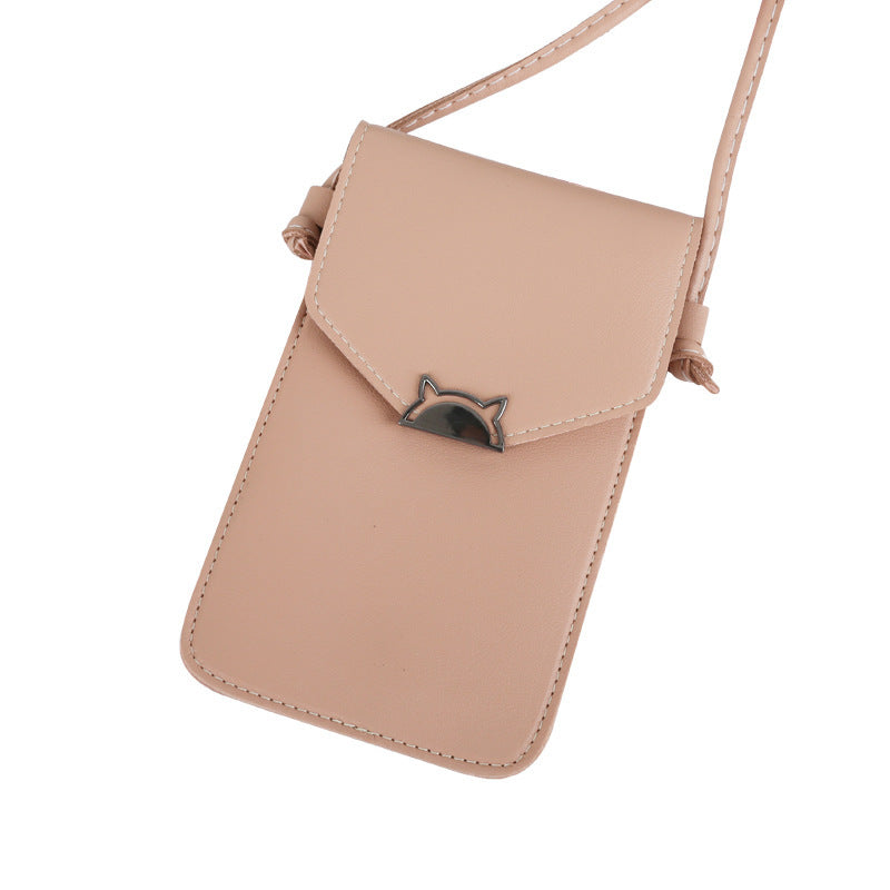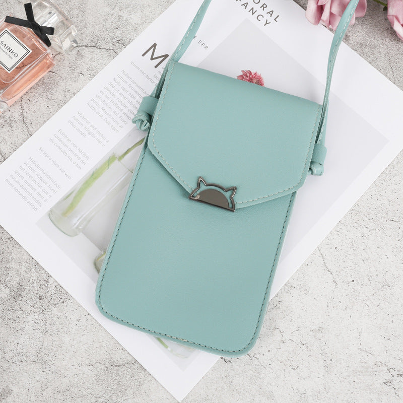Touch Screen Women's Cat Metal Decoration Transparent Magic Multifunctional Mobile Phone Bag